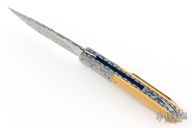 From an early age Herucus had been interested in knives, and as a young boy his pocket money used to go towards buying knives, to the extent that his collection grew to over three hundred knives. In 1998 he made his first knife, and it was not long before this interest in hand crafted knives, and the building of his own machinery, was taking up all of his free time. During this time he developed his own designs of biltong, hunting and liner lock folding knives. Herucus decided to learn from the master knife maker himself, Andre Thorburn, and enrolled for a course in liner lock folding knives. Since then the two families became very close friends and enjoy sitting around a fire in the Bushveld talking about knives. Herucus Blomerus’ talented manufacturing skills and eye for great designs earned him a spot in the Knife Makers Guild of South Africa in the year 2000 and his popularity has skyrocketed ever since. Herucus Blomerus creates beautiful knives that have the look and feel of art knives but still function like work knives. He is a talented knife maker with a lot of experience. He extracts the very best from the materials made available to the customer and to bring them together in a knife which is both an investment and a practical tool. Each component of the knife is fitted perfectly by hand and thus each knife is unique. The smooth action really defines the quality of his work.