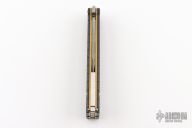 This Basilisk R from HOM Design features an acid tumble finished recurved clip point blade with swedge. The handle is comprised of carbon fiber scales over anodized titanium liners and stainless steel backspacers. Comes with original box and papers. Has a couple light scuffs, otherwise Excellent condition.