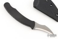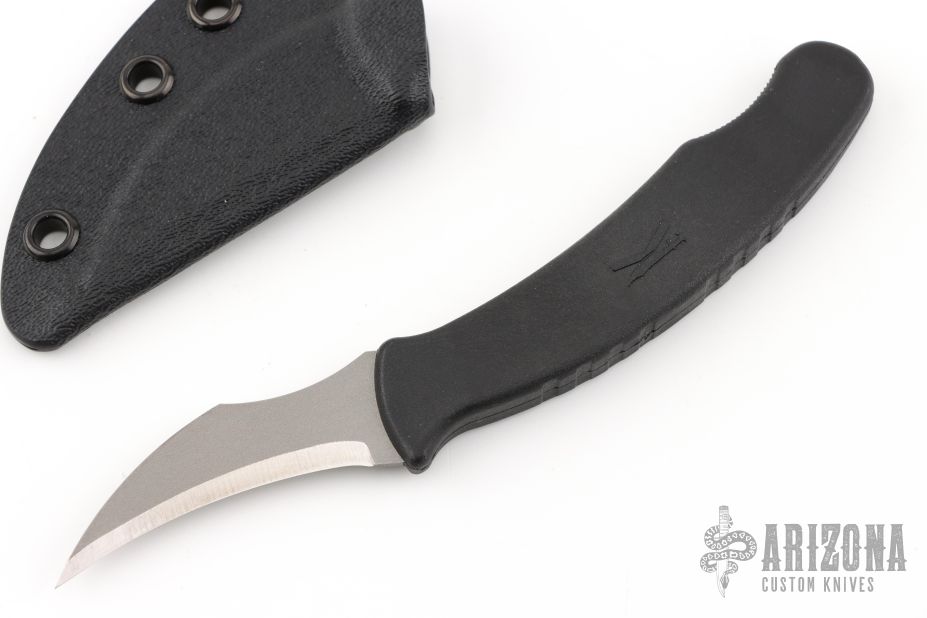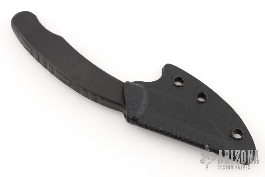 This L-via by Kopis Design features a bead blast and tumble finish hawkbill blade with thumb ramp, .061" blade stock and .784" blade depth, hidden tang construction. The handle is glass filled nylon. Comes with original box and kydex sheath. Excellent condition.