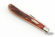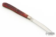 This slipjoint by Robeson Cutlery features a polished blade with nail nick. The handle features nickel silver bolsters and red stag bone covers over brass liners and stainless steel spring. Includes original box. Excellent Condition.