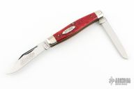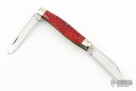 This slipjoint by Robeson Cutlery features two polished blades with nail nick. The handle features nickel silver bolsters and red bone covers over brass liners and stainless steel spring. Includes original box. Excellent Condition.