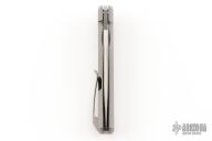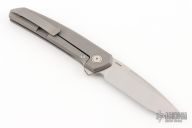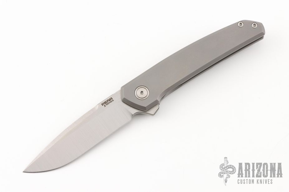 This Cobra framelock by Enrique Pena features a satin finished drop point blade with swedge, notched thumbrest and dual thumbstuds. The handle has a bead blasted titanium frame with a titanium backspacer with lanyard pin. Matching tip up titanium clip.  Includes the original box and papers. New from maker!