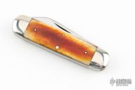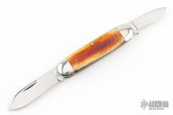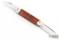 This knife by Queen City Cutlery Company features mirror polished blades with nail nicks. The handle has nickel silver bolsters, smooth bone covers, nickel silver liners, stainless steel springs. Comes with original box. Excellent condition.