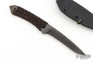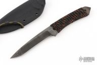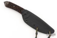 This knife by Kim Breed features a black tanto blade with .190" blade stock and .935" blade depth, full tang construction with cord wrap. Comes with a kydex sheath. Has some scuffs on the finish, otherwise excellent condition.