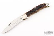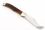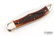 This slipjoint by queen cutlery features a mirror finished blade with nail nick.  The handle features nickel silver bolsters, brass liners and jigged bone covers. Steel spring. Comes with original box. Has light scratches, otherwise excellent condition.
