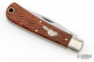 This knife by Great Eastern Cutlery features a satin finished clip point blade with a nail nick.  The handle has nickel silver bolsters with jigged wood covers over brass liners.  Steel backspring.  Comes with original packaging. Excellent condition.