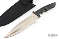This Larry Battle Bowie by Paragon Cutlery Company features a satin finished blade with sharpened top edge, .236" blade stock and 1.969" blade depth, full tang construction. The handle has black linen micarta scales with stainless steel pins and lanyard hole. Excellent condition. Comes with original box and nylon sheath.