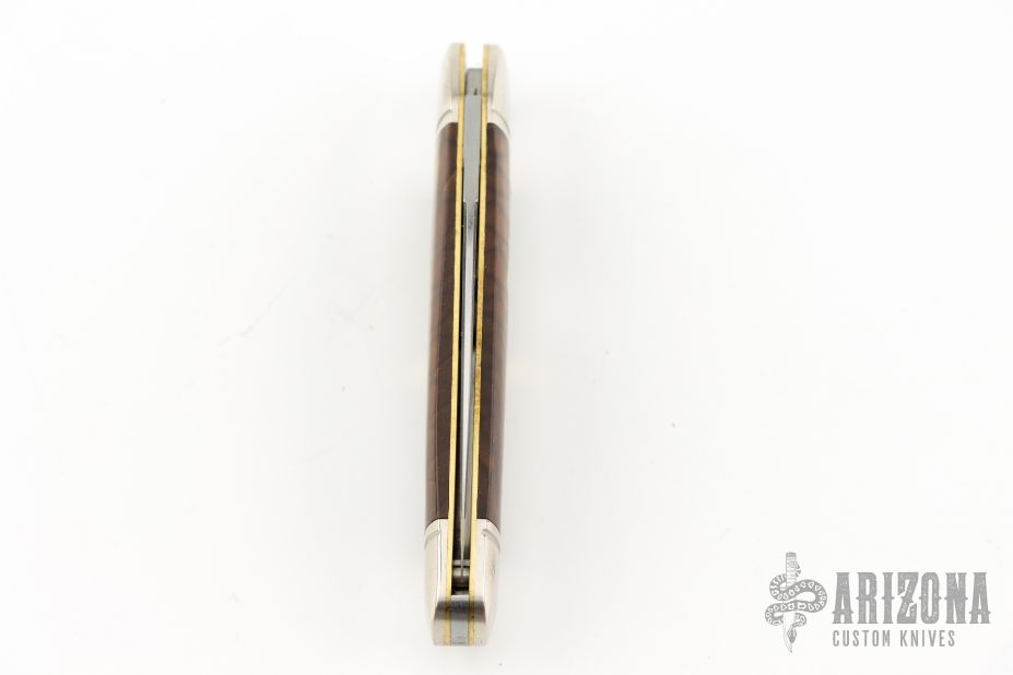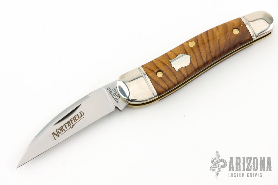 This slipjoint by Northfield features a satin finished blade with nail nick. The handle has nickel silver bolsters and brass liners, acrylic covers. Comes with original packaging. Excellent condition.