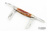This slipjoint by Winchester features mirror polished blades with nail nicks. The handle has nickel silver bolsters, bone covers, brass liners and stainless steel springs. Has a couple light scratches, excellent condition.