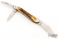 This knife has 3 mirror polished blades with nail nicks, nickel silver bolsters, bone scales, brass liners and stainless steel springs. Has a couple light scratches, otherwise excellent condition.