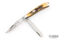 This knife has 2 mirror polished blades with nail nicks, nickel silver bolsters, bone scales, brass liners and stainless steel springs. Has a couple light scratches, otherwise excellent condition.