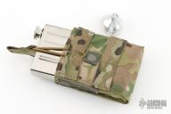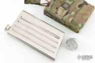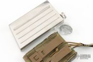 Stainless steel flask by Knight's Armament. Comes with an OD green KAC Gear sheath and original packaging and papers. 3.5" x 6.5" x 1". Excellent condition.