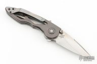 This Impulse folder by Buck Knives features a satin finished blade with flipper and false top edge. The handle has aluminum scales, stainless steel liners and tip up clip. Fast and smooth assisted action via thumb studs or flipper. Comes with Buck box and papers. Has some light scuffs and scratches. Nice smooth action. Great condition.