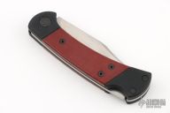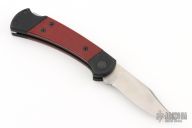 This Buck 112 features a satin finished clip point blade with nail nick. The handle has a black aluminum frame with micarta scales and a stainless steel backspacer. Comes with original box, papers, and black leather sheath. Has a couple light scuffs, otherwise Excellent condition.