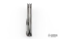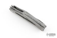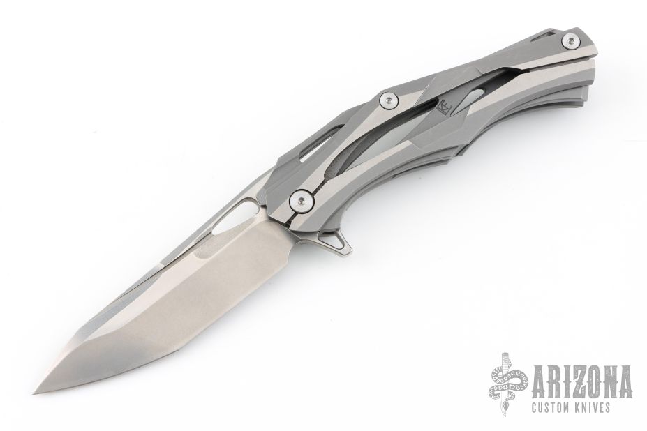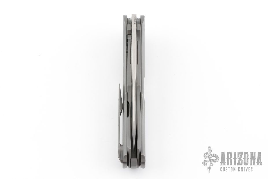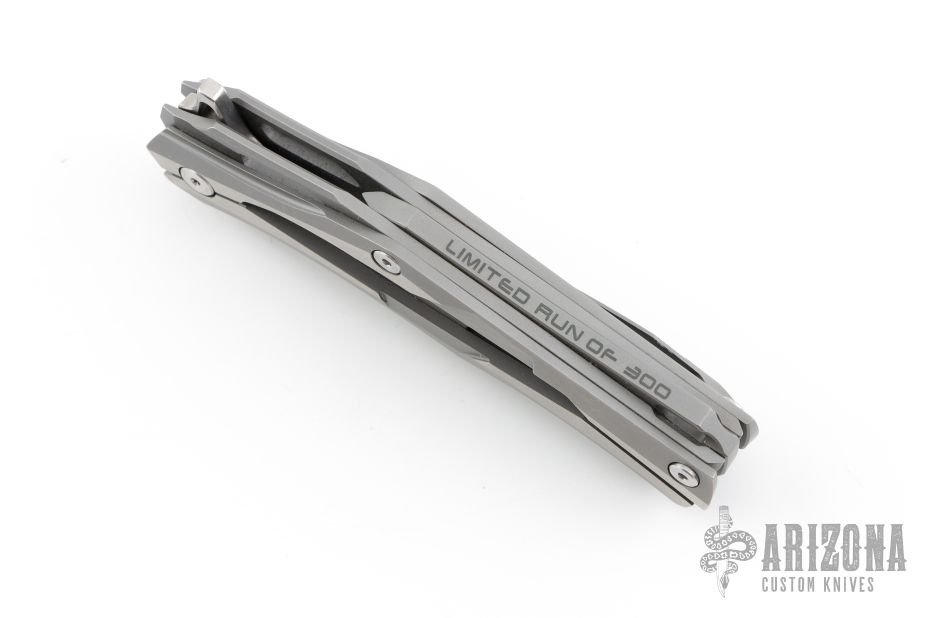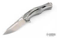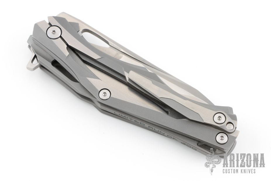 This Decepticon 1 from Custom Knife Factory features a tumble and satin finished tanto S35VN blade with thumbhole and flipper. The handle has a satin and bead blasted titanium frame/liners/backspacer/clip, tip up carry. Nice detent, lockup and blade seating. Comes with original Velcro case and COA dated 12/14. 1 of 300 limited run. Excellent condition.