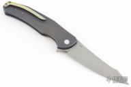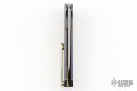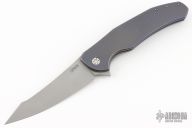 This Ishtar by Herman Knives features a stonewashed blade. The handle is milled and stonewashed titanium frame with an anodized titanium backspacer and tip up clip. Rides on bearings, nice detent, lockup and blade seating.