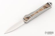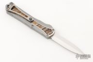 This Manticore S by Heretic Knives features a double-edged polished blade. The handle has a two-tone stainless steel frame with mirror polished flats and blasted finish otherwise, beautiful seamless mammoth tooth inlays, stainless steel thumb slide and a tip down titanium clip with ball bearing. Comes with original box, a zippered case and COA. S/N 006. Has a couple light scratches on the frame, otherwise excellent condition.