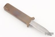 This Defender Auto by ARS and Darriel Caston features a milled double edged blade. The handle is copper with a copper button. Comes with a zippered case. Has patina, and some scuffs/scratches. Great condition otherwise.