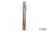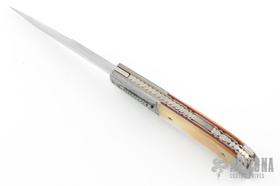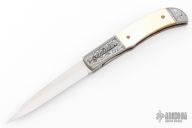 "Ever since I can remember I have had a fascination with knives. My grandfather gave me my first pocketknife when I was 5, and it was that moment that did it. I started making knives by taking apart my mothers kitchen knives. My parents thought that there was something "wrong" with me because I had a fascination with sharp objects. That all changed when I took them to a local knife show and showed them a whole room of people interested in knives. I seriously began making knives when I was 16. I have been making knives for over 25 years. For the past 10 years I have mainly concentrated on making folding knives and automatics. I mainly concentrate on making one-of-a-kind folding knives of my own design, but I do occasionally make a few fixed blades. I specialize in unique file work patterns, and I also do simple carving and some of my own sheath work. For steels I mostly use Damascus, but also use 154CM, CPM154, D-2, 1095, W-2 and others. Handle materials include Exotic Woods, Stag, Pearl, and various types of Ivories including Elephant, Mammoth, and Walrus. As far as knife builds go, I think I am going to concentrate on building more elaborate autos as well as converting some of my older designs into autos. I appreciate the challenge of making an auto, and it keeps knife making exciting for me.”