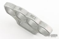 Say hello to the McNucks! This desktop accessory will make quite the statement! Made 100% in-house from a solid billet of 6061 Aluminum, this paperweight features 1" wide finger holes, it's .500" thick, and it comes in at a weight of 3 oz. Smash through your paperwork with the McNucks! Has some light scuffs, otherwise excellent condition.