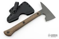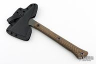 The Jenny Wren Spike offers full tang construction and 1/4" 80CRV2 carbon steel (57-58 HRC) is used in its construction. 3D contoured G10 handle scales are incorporated for grip and durability. The tomahawk has a Tungsten Cerakote finish that facilitates greater resistance to wear, corrosion, chemical and impact damage, as well as providing a low visibility look.