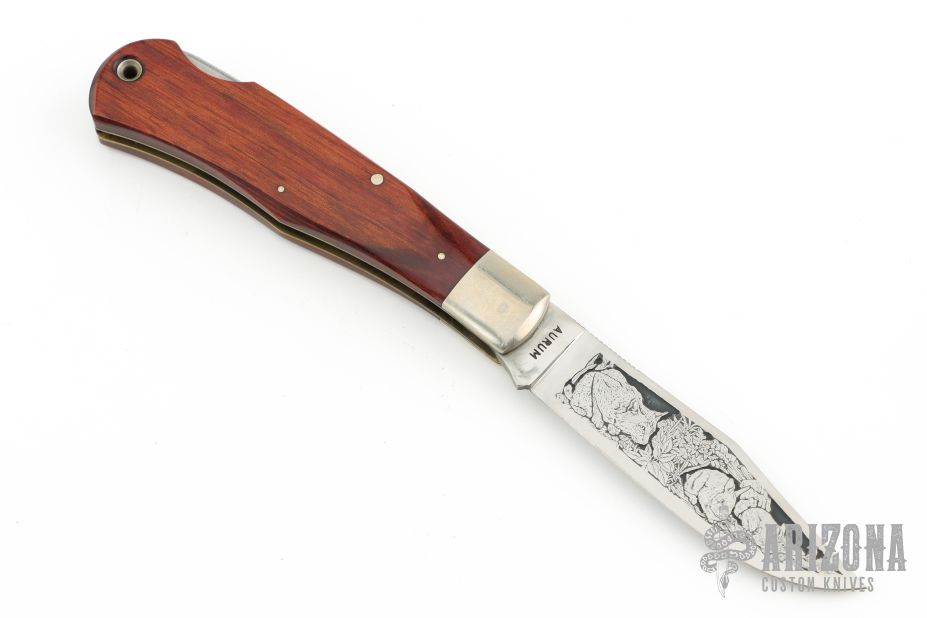 History of Aurum Aurum Etchings began in 1975 as a division of Aurum Jewelry Company (1973 - 2000) in Richardson, TX. Later that year, it moved to a 20,000 square foot facility in Garland, TX as a separate company. The jewelry company was originally founded to produce gemstone quality rubies, sapphires, garnets and other laboratory produced materials being developed at Texas Instruments for laser and electronic applications. Both companies were based on the rapidly evolving semiconductor technology of the day. Aurum Etchings became the major supplier of chemical etchings to the firearm and knife industry. Its technology differed radically from the historic methods of the past. The company successfully pioneered and established precision chemical engraving as a legitimate decorative form in the firearms industry. Although the new photolithographic etching process did not have the identical physical appearance of hand engraving, its precision detail and affordability made it a force in the market. Its artistic merit and craftsmanship remain the standard for this technology. Colt Industries became an early investor, and Colt Firearms, Winchester, and Buck Knives were early major clients. Thousands of firearms were produced for groups and organizations. Although the firearms industry was always the major activity, Aurum etched knives were also widely collected, in particular, those associated with Buck Knives and the Aurum brand. "Aurum Etchings" achieved hallmark status among knife collectors. After 15 years, Aurum sold its knife etching technology to Buck Knives and installed a new production facility in the El Cajon factory. Later, an updated version was installed in the new Idaho plant. The firearm based technology was sold to a company specializing in collectable handguns and rifles which continues today.