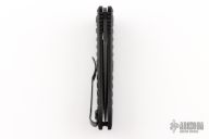 This automatic Mini Presidio II model sports a scaled down EDC design with a black aluminum handle and a black finished blade with a partially serrated edge.