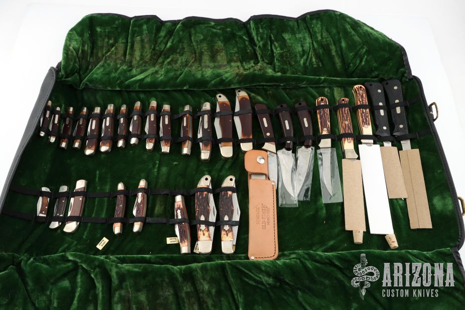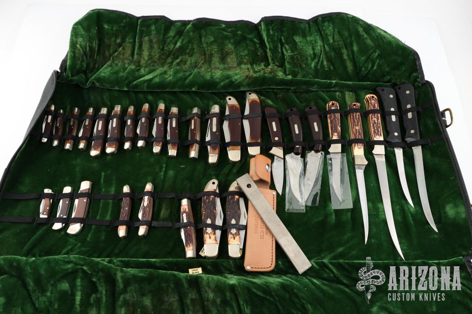 This set of thirty knives in a knife roll by Schrade Cutlery, features: