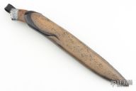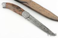 Roger Bergh is from Bygdea Sweden and specializes in Scandinavian style fixed blade knives with Damascus and natural handle materials. He started his knifemaking career working with leather in 1969. By 1973 he was making knife handles, and by 1995 after 15 years as a part-time knifemaker he started forging his own Damascus steel under the supervision and training of Conny Persson.