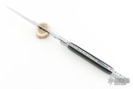 This Picklock Auto by Agasi Hambartsumian of Armenian Doctor Knives features a mirror polished dagger bayonet blade with a false top edge. The handle has a polished stainless steel frame with fileworked stainless steel backspacer, buffalo horn scales with brass pins. New from maker.