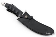 This Warrior from Al Mar Knives features a satin finished blade with serrated top edge, .228" blade stock and 1.484" blade depth, hidden tang construction. The handle has a stainless steel double guard, black rubberized handle, and a stainless steel butt. Comes with a black leather sheath and original box. Excellent condition.