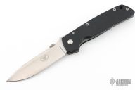 This ATCF by Bob Terzuola features a satin polish finished blade with false top edge, notched thumbrest and a thumbdisc. The handle has a G10 frame with titanium liner, black backspacer, tip up titanium clip. Nice detent, lockup and blade seating. Has some scuffs and scratches on the handle and blade otherwise the knife is in great condition.