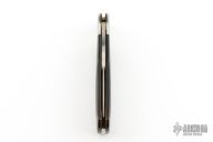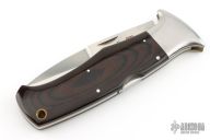 This 1980's Al Mar SERE features a satin finished spear point blade with a false top edge. The handle has satin finished stainless steel bolsters, brass liners, black/brown micarta scales, and a stainless steel backspacer. This is a nice heavy-duty folder. Has some scuffs and scratches, good condition otherwise.