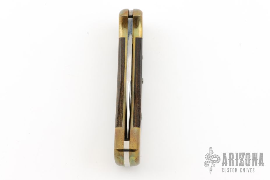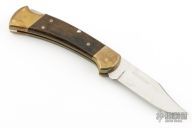 This vintage (1981-1986) Buck 112 "folding hunter" features a satin finished clip point blade with nail nick. It has wood scales, brass bolsters and frame. Limited edition version. Has some patina and some light scuffs, good condition otherwise.