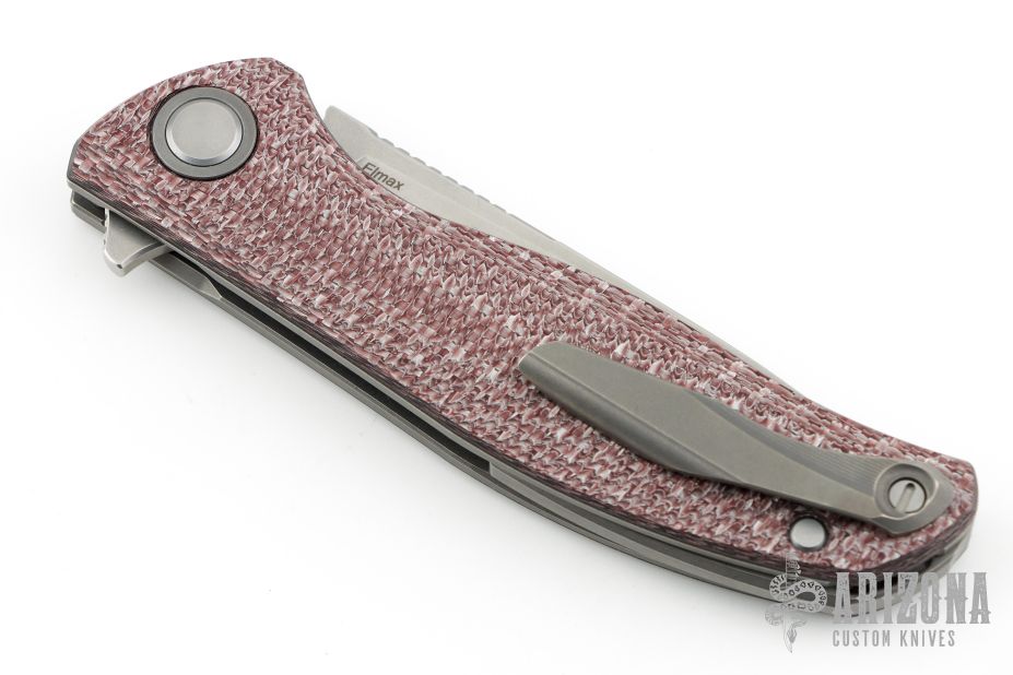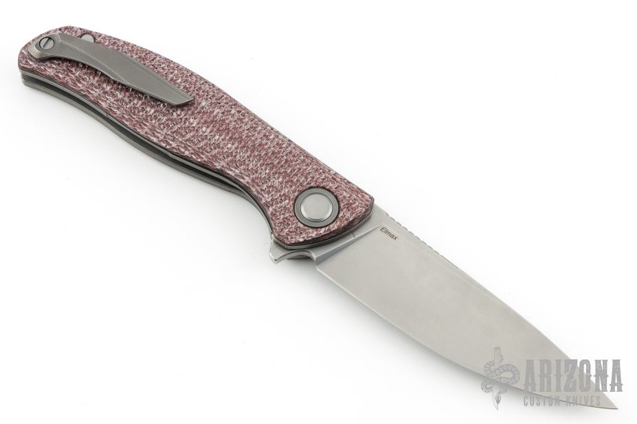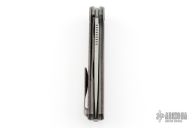 This F3 Flipper from Shirogorov has a tumbled flat ground spear point blade with notched flipper. Handle has Alutex scales, tumbled titanium backspacer, tip up clip and liners. Recessed lanyard bail. Dead center blade seating, excellent detent and lockup. Rides on bearings. Excellent condition. Comes with original box and papers.