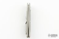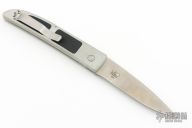 The 3000-CLR automatic from Benchmade is a discontinued model designed by Mel Pardue. Side opening, coil spring. Satin finish blade. Silver aluminum handle with rubber inserts and tip up stainless steel clip. Comes with original box and papers. Has a couple light scuffs, and a couple small oxidation spots on the blade, otherwise good condition.