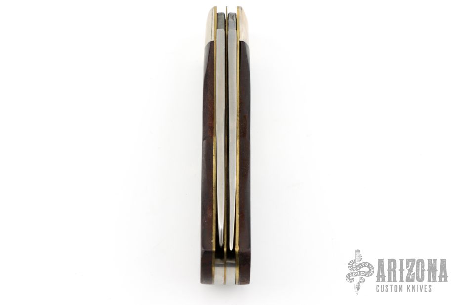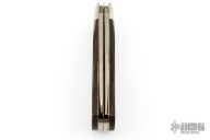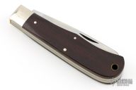 This "Hunter" Bullet Knife was the Remington Collector's Series Knife for 1989. It was intended to help sales of their model 4 and 6 rifles. Has two satin finished blades with nail nicks. The handle has pinched nickel silver bolsters, cocobolo covers, brass liners and steel springs. Comes with original box and papers. Excellent Condition.