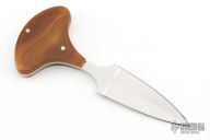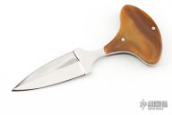 This knife by Jim Downs features a mirror polished double edged blade with .102" blade depth and .809" blade depth, full tang construction. The handle has acrylic scales. Has a couple light scratches, otherwise excellent condition.