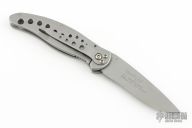 Kershaw 1640BSA Vapor, Boy Scounts of America edition. Drop point bead blast finished blade, bead blast finished steel frame and tip down clip. Discontinued model. Has scuffs and scratches, great condition otherwise.