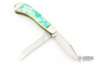 This slipjoint by Case features 2 mirror polished blades with nail nicks. The handle has pinched nickel silver bolsters, smooth bone covers, brass liners and stainless springs. Comes with original box and papers. Has a couple light scratches, otherwise excellent condition.
