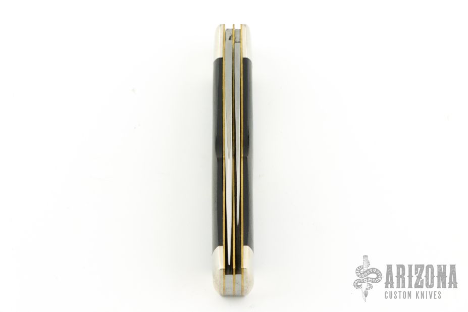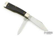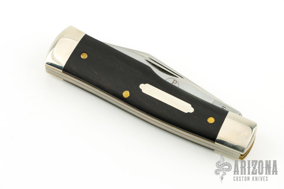 This slipjoint by Great Eastern Cutlery features two satin-polish finished blades with nail nicks.  The handle features nickel silver bolsters, brass liners and wood covers. Steel springs. Comes in original tube with paper. Has some light scratches, excellent condition otherwise.