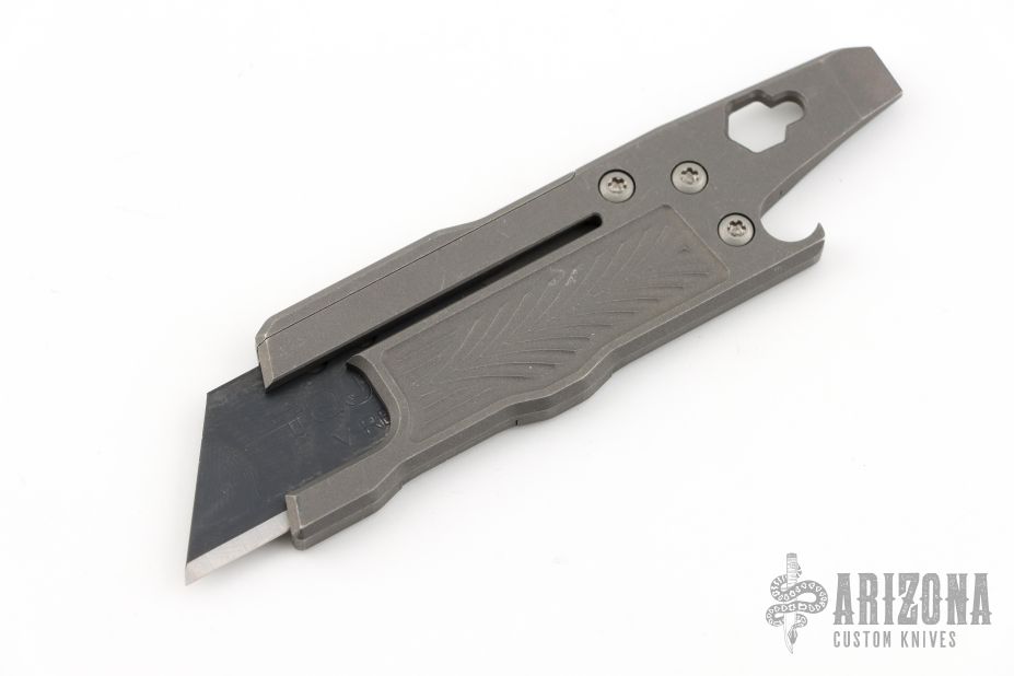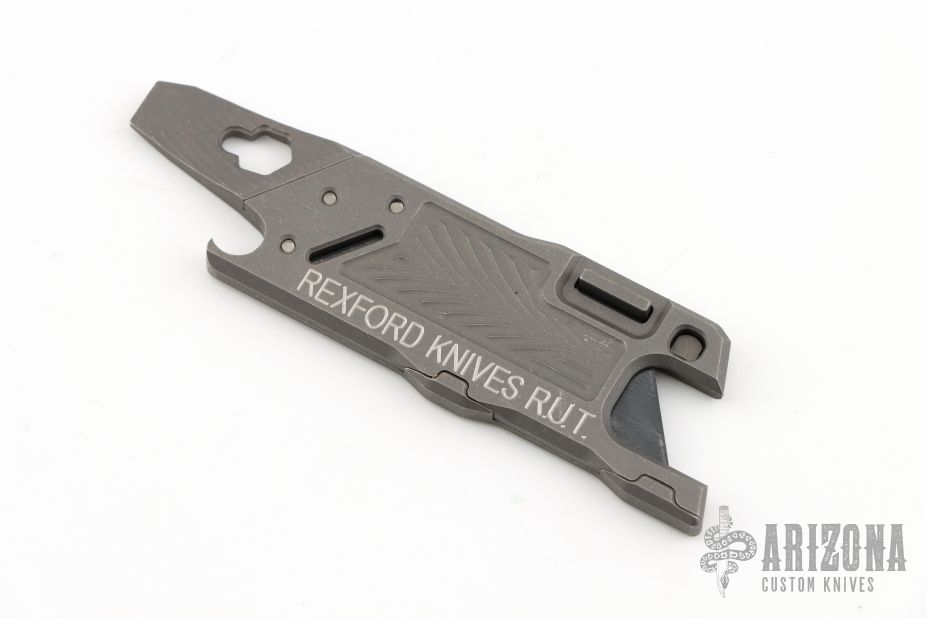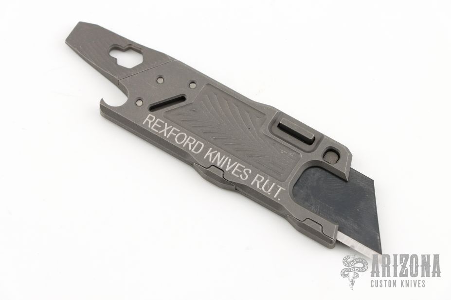 This Rexford RUT (Rexford Utility Tool) from Todd Rexford uses a standard utility razor blade. Blade can easily be replaced. This piece features a functional lanyard hole and flat head screwdriver/pry tip, and bottle opener. New from maker!