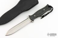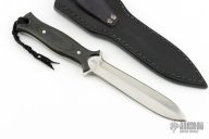 This Dagger by CE Johnson features a hand rub satin finished double edged blade with, .184" blade stock and .949" blade depth, full tang construction with black linen micarta scales. Comes with a black leather sheath. Excellent condition.