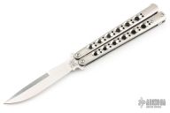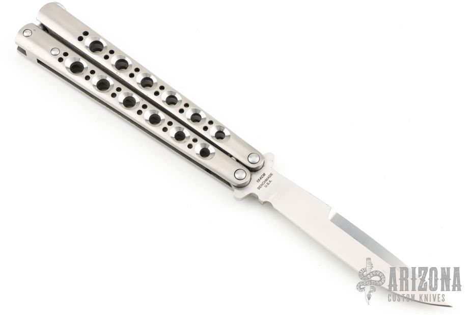 This Model 42 by Benchmade features a satin finished blade. The handles are satin finished titanium with spring-latch. Has a few light scratches, otherwise excellent condition.
