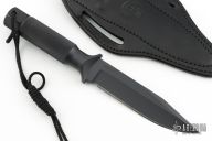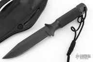 This Mark VI by Chris Reeve was designed to incorporate the two basic criteria required in knives destined for hard field usage, these clip-points have plenty of blade weight and good strong points. This design has been used by soldiers all over the world who have found them to be extremely good weapons as well as rugged dependable tools. Comes with black leather belt sheath (El Paso Saddlery Co.). Has a couple light scuffs and scratches, excellent condition otherwise.