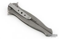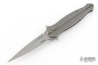 This VPD (Voorhies Pocket Dagger) flipper features a stonewashed finish double edged hollow ground blade and milled titanium frame. Stonewash stainless steel clip. Includes IKBS (Ikoma-Korth Bearing System) for fast and smooth flipper opening that requires no wrist action. Nice blade seating, detent, and lockup. Outstanding work. Excellent condition.