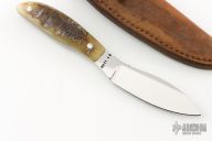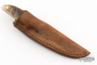 This Skinner by Manley has a mirror polished blade with notched thumbrest, .125" blade stock and .969" depth, full tang construction. The handle has sheep horn scales with nickel silver pins. Comes with a brown leather sheath. Dated '05 and #4290. Has a few light scratches, otherwise excellent condition.