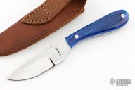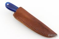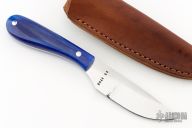 This Utility by Manley has a mirror polished blade with notched thumbrest, .143" blade stock and .945" depth, full tang construction. The handle has blue camel bone scales with nickel silver pins. Comes with a brown leather sheath. Dated '25 and #1789. Excellent condition.