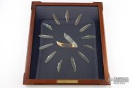 Schrade Limited Edition Thirteen Colony Series Set of 14 Folding Pocket Knives. Comes with wooden/glass display case. Excellent condition. Each knife has s/n 1876.