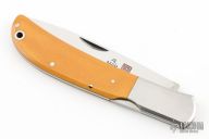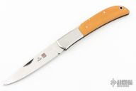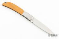 This Eagle by Al Mar features a satin finished blade with nail nick. The handle has stainless steel bolsters, ivory paper micarta scales with a stainless steel backspacer. Has some light scratches, otherwise good condition.
